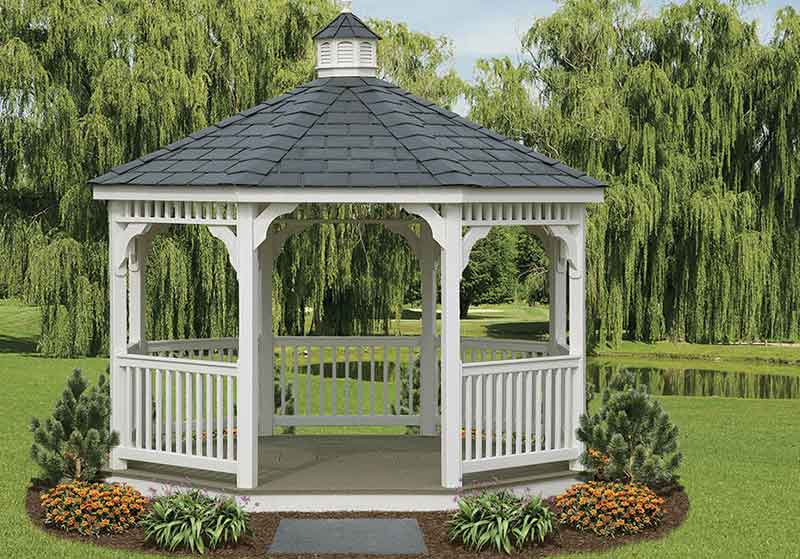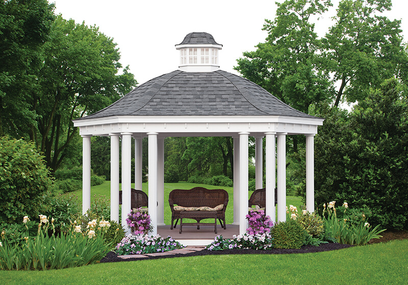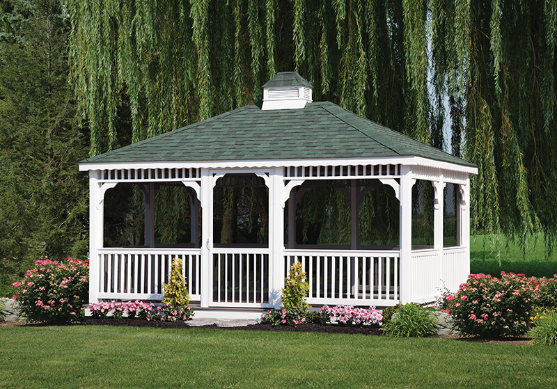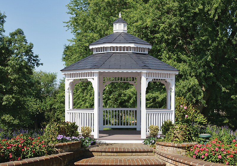 Choose from a variety of sizes and shapes designed to complement your landscape and enhance nearly any backyard setting. From warm wood finishes to crisp white vinyl gazebos, our collection combines beauty and function for the ultimate in outdoor living.